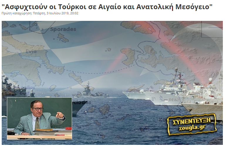 «Αυτό που η ελληνική πλευρά ονομάζει προκλητικότητα της Τουρκίας δεν είναι τίποτα άλλο από την αντίδραση, την οποία προκαλεί η ασφυξία που αισθάνεται από τον εγκλωβισμό της στις ακτές της και τον αποκλεισμό της από την Θάλασσα του Αιγαίου και την Μεσόγειο Θάλασσα. Χαρακτηριστικά λένε «δεν μπορούμε να ξεμυτήσουμε ούτε στο Αιγαίο, ούτε στην Ανατολική Μεσόγειο»!