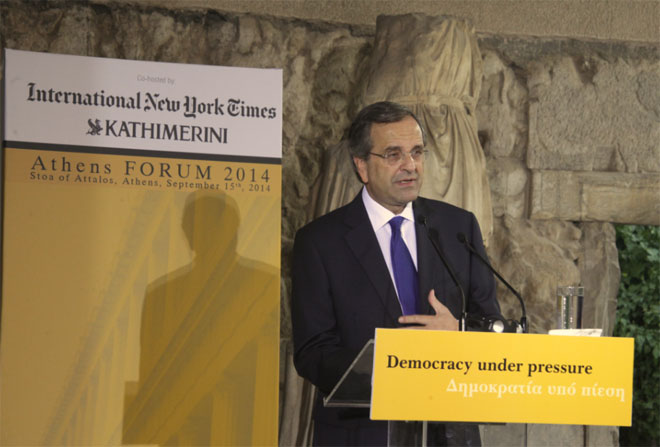 Έμμεση επίθεση στον ΣΥΡΙΖΑ έκανε ο Πρωθυπουργός Αντώνης Σαμαράς το βράδυ της Δευτέρας, μιλώντας στο συνέδριο Athens Forum 2014 «Η Δημοκρατία υπό πίεση».