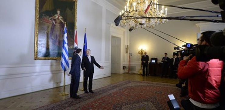 Ομοβροντία πιέσεων δέχεται τις τελευταίες ώρες η ελληνική κυβέρνηση, μετά τις προγραμματικές δηλώσεις στη Βουλή, με τον Αλέξη Τσίπρα να γίνεται δεκτός στο Μέγαρο της Αυστριακής Καγκελαρίας και το Βερολίνο να διαμηνύει εκ νέου πως παραμένει πάγια η θέση του για το πρόγραμμα λιτότητας.