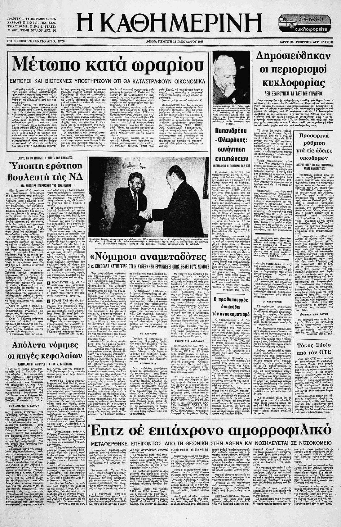 Τι έγραφε η «Καθημερινή» τον Ιανουάριο του 1988…