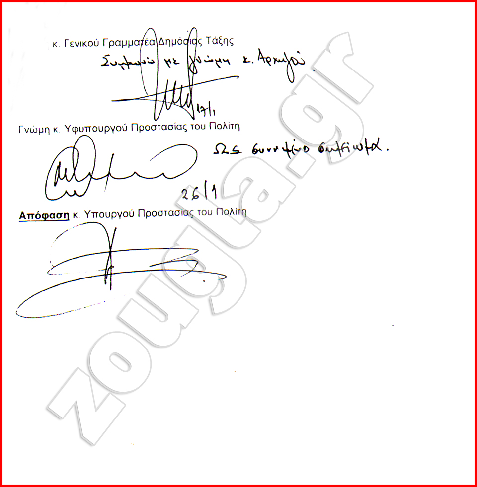 Τα δύο πολιτικά στελέχη του ΠΑ.ΣΟ.Κ. εξαιτίας του θεσμικού τους ρόλου ήταν τα καθ’ ύλην αρμόδια για την υπογραφή των συμβάσεων και της επέκτασής τους. Ανάλογος ρόλος είχε ανατεθεί και στον πρώην γενικό γραμματέα Δημόσιας Τάξης, κ. Γρηγόρη Τασούλα. Οι σχετικές αποφάσεις προβλέπουν ότι οι γενικοί γραμματείς έχουν δικαίωμα υπογραφής για ποσά από ένα μέχρι και 7.5 εκατ. ευρώ, ενώ οι υφυπουργοί από 7.5 εκατ. ευρώ και πάνω…