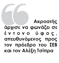 Κατά τη διάρκεια της ομιλίας Δασκαλόπουλου, ένας ακροατής σηκώθηκε μαινόμενος και άρχισε να φωνάζει τόσο στον πρόεδρο του ΣΕΒ όσο και στον επικεφαλής του ΣΥΡΙΖΑ.