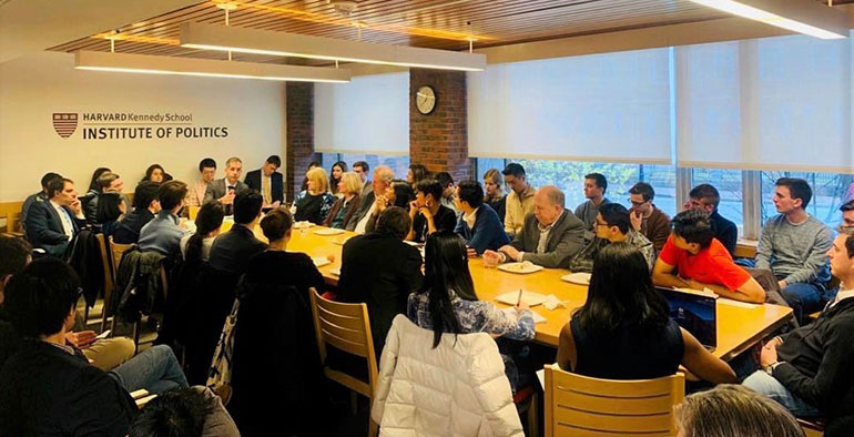 Ιδιαίτερο ενδιαφέρον συγκέντρωσε η ομιλία του δημάρχου Αθηναίων σε φοιτητές και καθηγητές στο «Center of European Studies» του πανεπιστημίου Harvard όπως και στο Institute of Politics. Αναφέρθηκε διεξοδικά στις νέες προκλήσεις που αντιμετωπίζει μια πόλη όπως η Αθήνα και οι περισσότερες σύγχρονες μεγαλουπόλεις, στην πράσινη ανάπτυξη, στα προβλήματα που δημιουργεί η κλιματική αλλαγή, στην σύγχρονη οικονομία των πόλεων, στο προσφυγικό ζήτημα που αποκτά παγκόσμιες διαστάσεις κ.α. Ήταν επίσης ομιλητής στο «Atlantic Council», ένα από τα σημαντικότερα «think tanks» των Ηνωμένων Πολιτειών που εδρεύει στην Αμερικανική πρωτεύουσα.