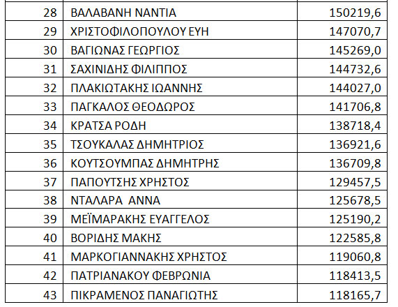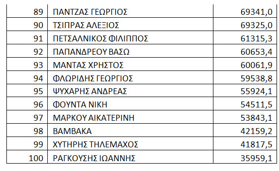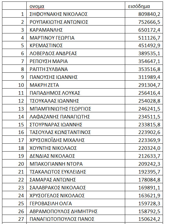 Ακολουθούν οι πίνακες βάσει του εισοδήματος που δηλώνουν: