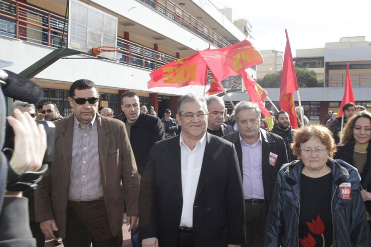 Εκεί τον περίμεναν αρκετά μέλη του ΚΚΕ, που τον χειροκρότησαν κατά την είσοδό του.