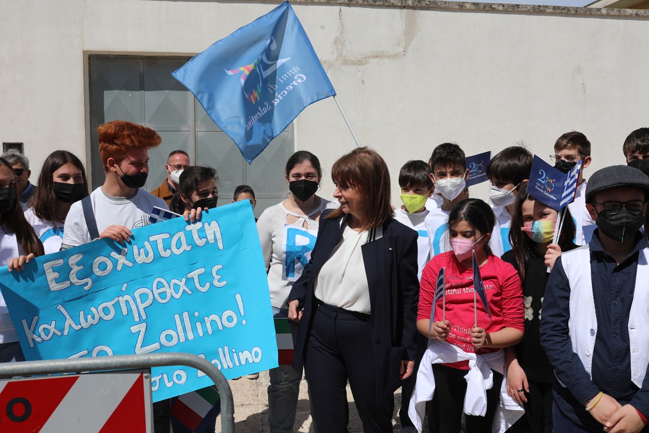 Επίτιμη δημότης της Grecia Salentina ανακηρύχθηκε το Σάββατο 9 Απριλίου, η Πρόεδρος της Δημοκρατίας, Κατερίνα Σακελλαροπούλου στο πλαίσιο της επίσκεψής της στα ελληνόφωνα χωριά της Απουλίας στην περιοχή Σαλέντο της Κάτω Ιταλίας, μετά από πρόσκληση του Προέδρου της Ένωσης Ελληνόφωνων Δήμων της Grecia Salentina Roberto Casaluci, με την ευκαιρία των εορταστικών εκδηλώσεων για την 20η επέτειο από την ίδρυση της Ένωσης.