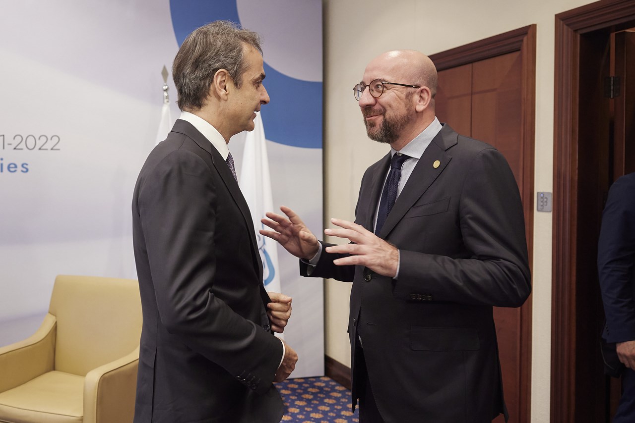 Ενώπιον του Σαρλ Μισέλ και των ηγετών της ΝΑ Ευρώπης, ο πρωθυπουργός μίλησε για το απαραβίαστο των συνόρων και σημείωσε: «Μετά την απροκάλυπτη ρωσική εισβολή στην Ουκρανία πρέπει να στείλουμε το μήνυμα ότι κανείς δεν μπορεί να δεχθεί τον δεσποτικό αναθεωρητισμό που απειλεί τα σύνορα, επάνω στα οποία δομήθηκε ο σύγχρονος κόσμος».