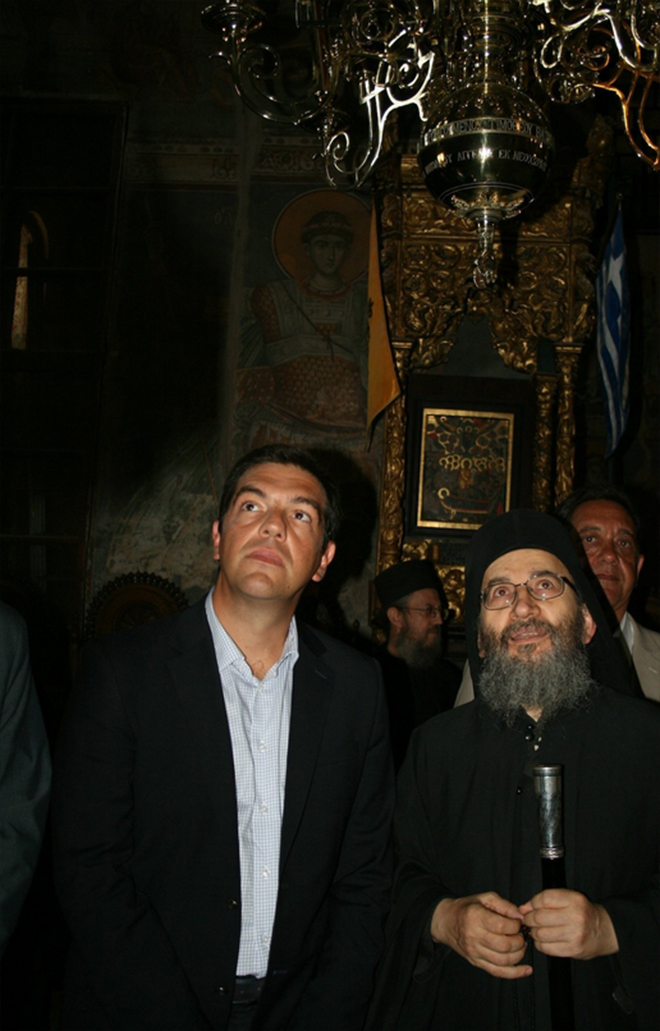 Σύμφωνα με το amen.gr ο πρόεδρος του ΣΥΡΙΖΑ εισήλθε μόνος του και παρέμεινε περίπου δέκα λεπτά σιωπηλός ενώπιον του ιερότερου προσκυνήματος του Αγίου Όρους.