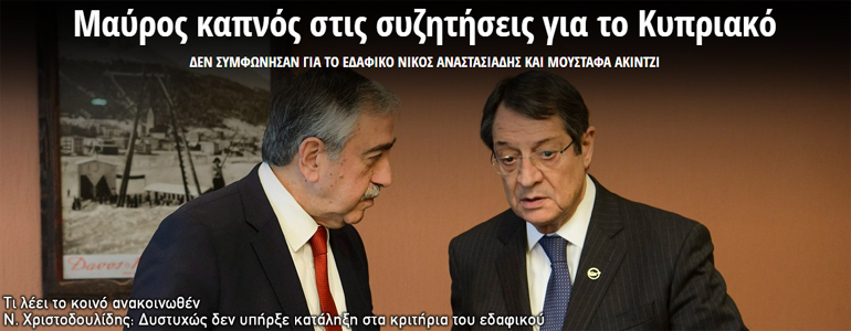 Στο Κυπριακό και στις διαβουλεύσεις μεταξύ Μουσταφά Ακιντζί και Νίκου Αναστασιάδη αναφέρεται η Süddeutsche Zeitung. Η εφημερίδα υποστηρίζει: «Όσον αφορά στο εδαφικό, το βόρειο τμήμα φέρεται να κινήθηκε προς τις θέσεις του νότου. Το βόρειο τμήμα ελέγχει το 36% του νησιού αλλά εκπροσωπεί μόνο το ένα τέταρτο του πληθυσμού.