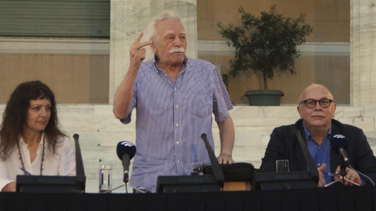 H Ζωή Κωνσταντοπούλου γιορτάζει την επέτειο των 41 ετών από την αποκατάσταση της Δημοκρατίας, στον προαύλιο χώρο της Βουλής, δίχως την παρουσία πολιτικών αρχηγών.
