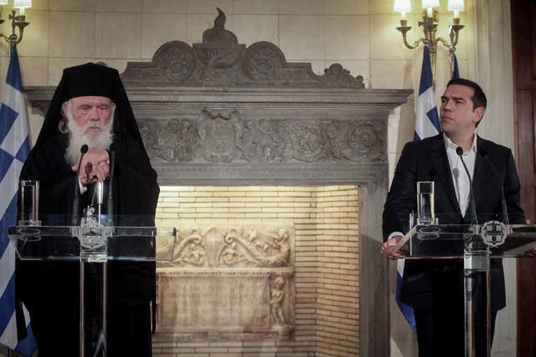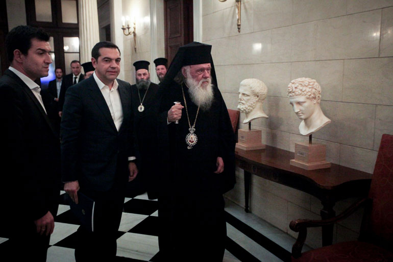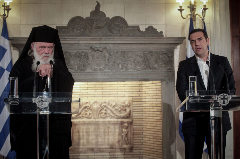 «Σήμερα βρισκόμαστε μπροστά σε ένα πλαίσιο συμφωνίας ιστορικού χαρακτήρα προς όφελος και των δύο πλευρών» ανακοίνωσε ο πρωθυπουργός Αλέξης Τσίπρας στις δηλώσεις του με τον Αρχιεπίσκοπο Αθηνών και πάσης Ελλάδος, κ. Ιερώνυμο.