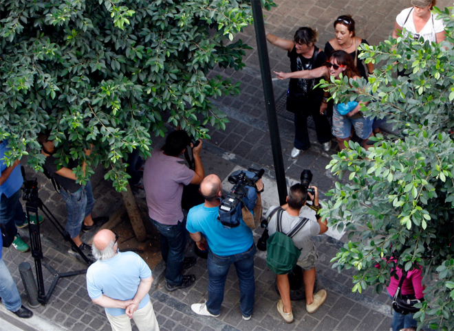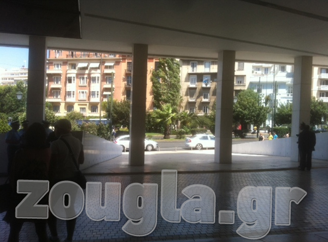 (Καταφτάνει η γερμανική αποστολή, ωστόσο, ο κ. Σόιμπλε επέλεξε να εισέλθει στο ξενοδοχείο από την πίσω πλευρά του ξενοδοχείου, επί της Μιχαλακοπούλου)
