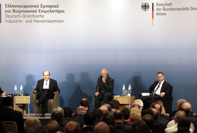 Παρουσία ισχυρών προσώπων της ελληνικής και γερμανικής ελίτ, ο κ. Σόιμπλε έχοντας εξ αριστερών