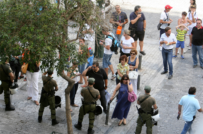 (Ελάχιστοι διαμαρτυρήθηκαν για την επίσκεψη Σόιμπλε και τις συνταγές λιτότητας)