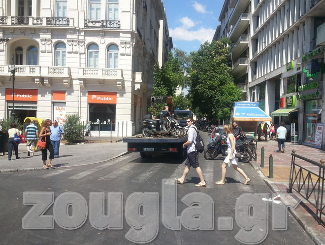 (Γερανοί της ΕΛ.ΑΣ. “σηκώνουν” τα μηχανάκια)