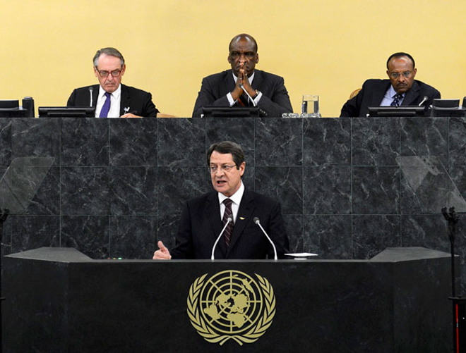 Αποφασισμένος να εργαστεί ακούραστα και με αποφασιστικότητα για λύση του Κυπριακού, δήλωσε ο Πρόεδρος της Δημοκρατίας, Νίκος Αναστασιάδης, προσφωνώντας τη Γενική Συνέλευση των Ηνωμένων Εθνών. Στην ομιλία του ο πρόεδρος Αναστασιάδης τόνισε την ετοιμότητα της ελληνοκυπριακής πλευράς για έναρξη των συνομιλιών για εξεύρεση λύσης, υπογράμμισε την ανάγκη σωστής προετοιμασίας των διαπραγματεύσεων ώστε ο διάλογος να έχει προοπτικές επιτυχίας και διατύπωσε την άποψη ότι η πρότασή του για επιστροφή της περίκλειστης πόλης της Αμμοχώστου στους νόμιμους κατοίκους της παρέχει την αναγκαία ώθηση για επίτευξη λύσης.