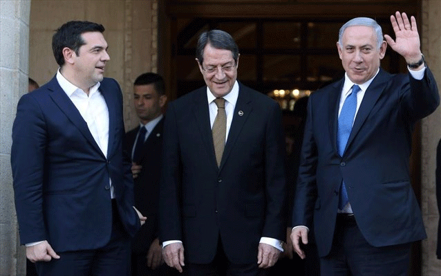 Με τη σφαγίδα ΗΠΑ και με την παρουσία του αμερικανού υπουργού Εξωτερικών πραγματοποιείται την Τετάρτη 20 Μαρτίου στην Ιερουσαλήμ η συνάντηση του Μπενιαμίν Νετανιάχου, του Αλέξη Τσίπρα και του Νίκου Αναστασιάδη, προκειμένου να συζητηθούν θέματα ενεργειακής ασφάλειας στην Ανατολική Μεσόγειο, θέματα τρομοκρατίας αλλά και για τη μελλοντική κατασκευή του αγωγού φυσικού αερίου EastMed.
