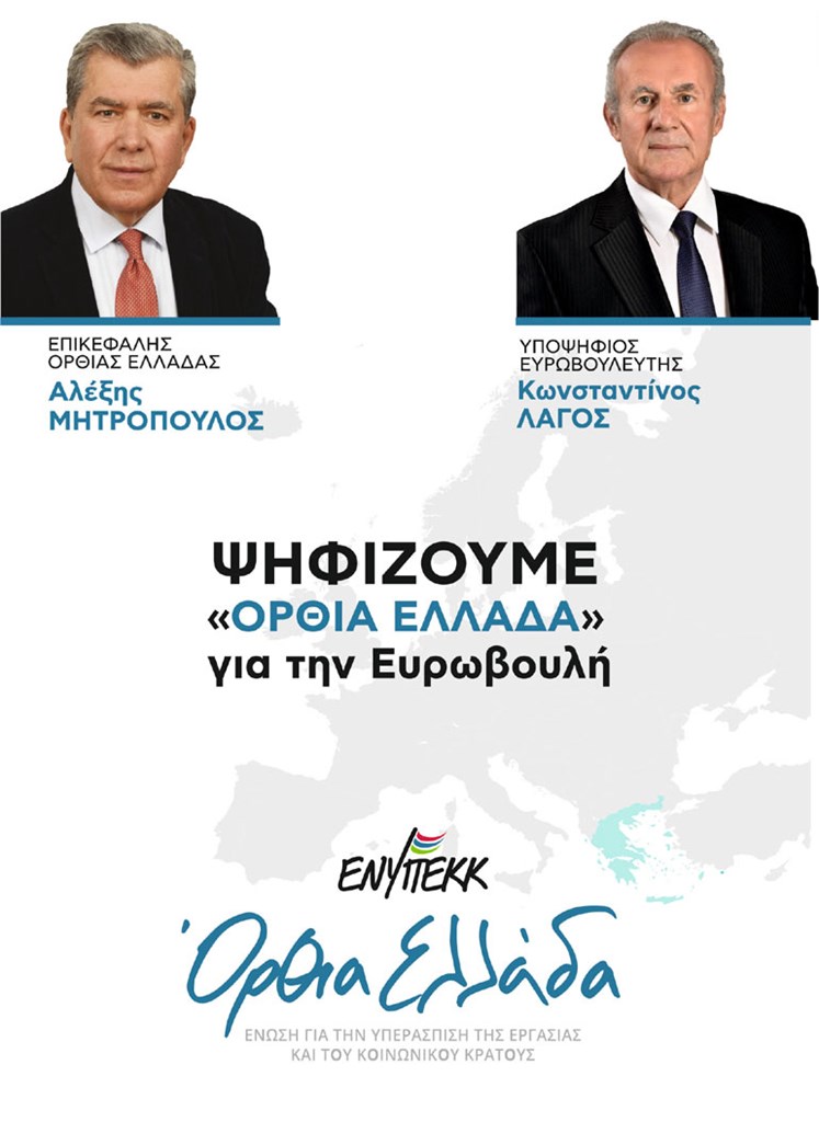 Αποφάσισε να διεκδικήσει την ψήφο των πολιτών συμπορευόμενος με τον Αλέξη Μητρόπουλο στις ευρωεκλογές. Ο κομματικός συνδυασμός είναι το ΕΝΥΠΕΚΚ και το σύνθημα – ταυτότητα του συνδυασμού «Όρθια Ελλάδα». Η εντιμότητα είναι δυσεύρετη στην εποχή μας και όταν εντοπίζεται σε κάποιον συμπολίτη, αναπτερώνει τις ελπίδες για το μέλλον.