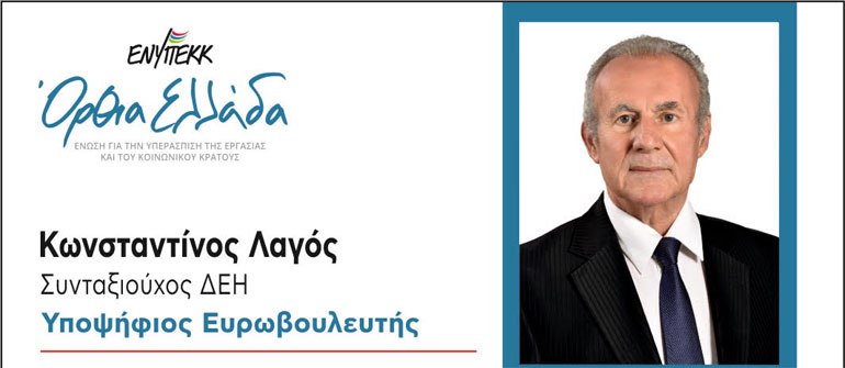 Ο Κωνσταντίνος Λαγός είναι πολίτης της παλιάς φρουράς. Συνταξιούχος με μακρά πορεία στη ΔΕΗ, μαχητικός στον συνδικαλισμό αλλά αφιλοκερδώς και αμισθί, μακριά από διπλοθεσίες και πολλαπλούς μισθούς. Εκτός κλίματος, δηλαδή, όσον αφορά στην κατάσταση που επικρατεί κατά κανόνα στο Δημόσιο και πέριξ αυτού.
