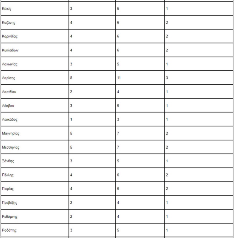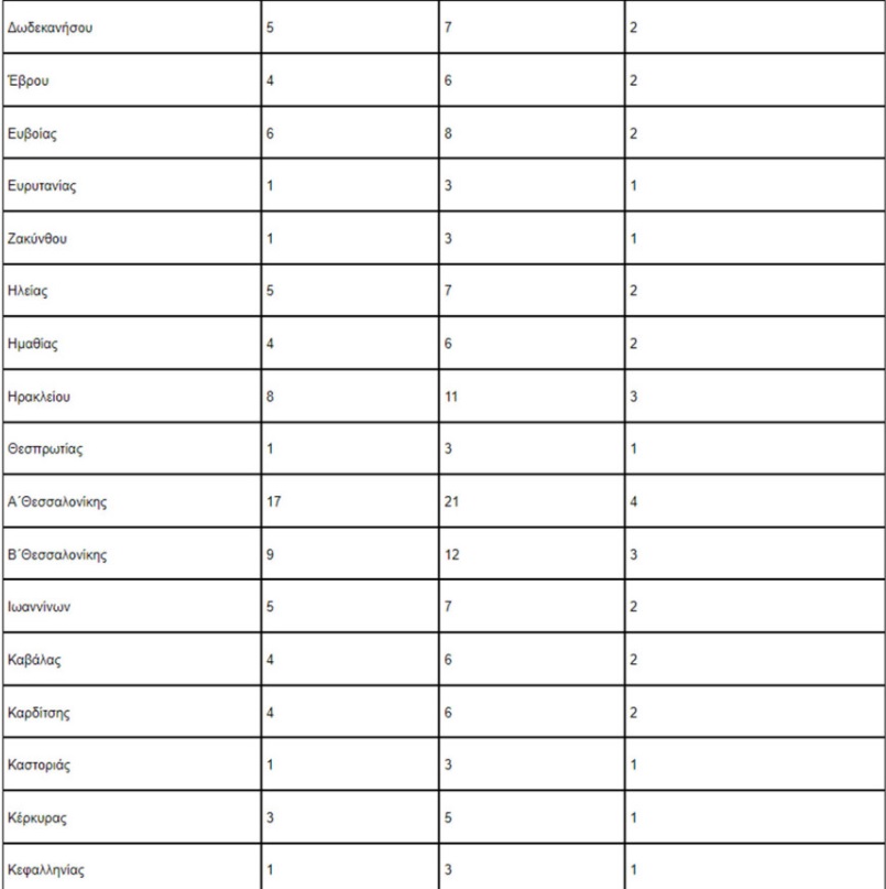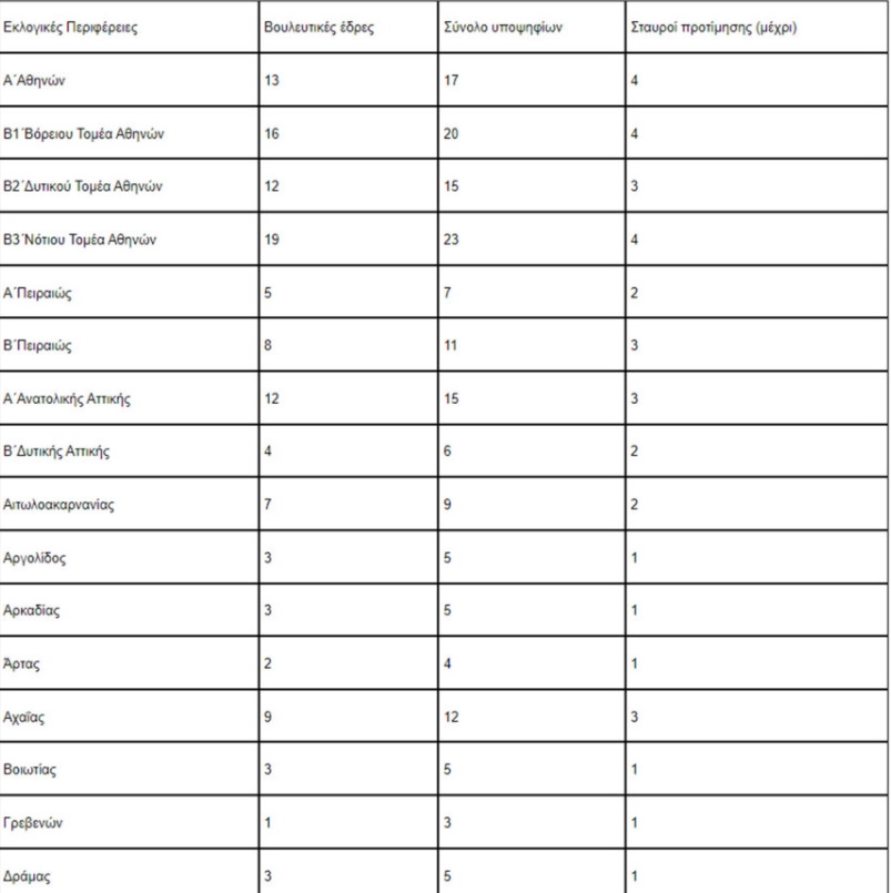 Δείτε στον παρακάτω πίνακα πόσους σταυρούς μπορείτε να τοποθετήσετε ανάλογα με την περιφέρεια στην οποία ψηφίζετε:
