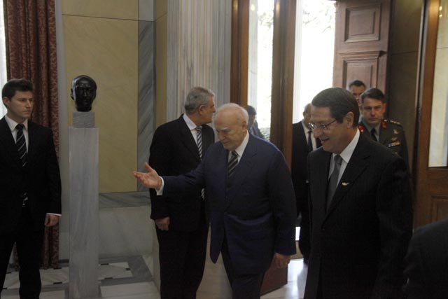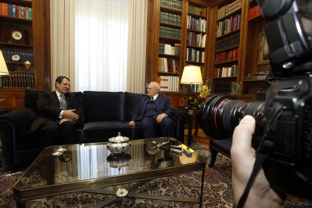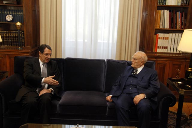Την πρώτη συνάντησή του με τον νεοεκλεγέντα Πρόεδρο της Κύπρου, Νίκο Αναστασιάδη, ο οποίος βρίσκεται από χθες στην Αθήνα, είχε το μεσημέρι, στο Προεδρικό Μέγαρο, ο Πρόεδρος της Δημοκρατίας Κάρολος Παπούλιας.