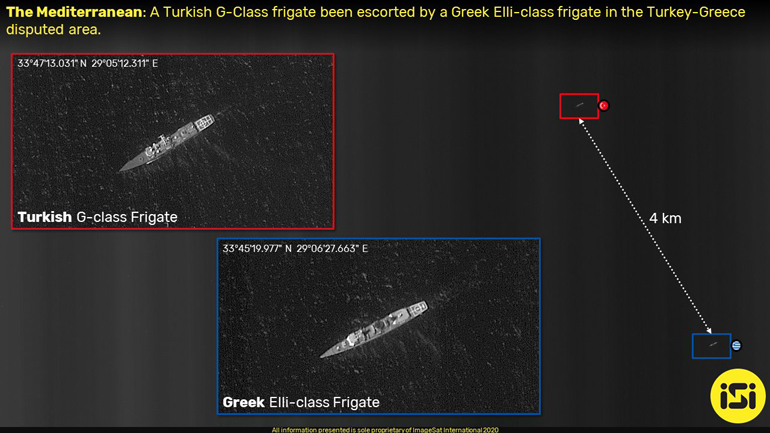 Πάντως αναλύοντας τις δύο φωτογραφίες της ισραηλινής εταιρείας ISI προκύπτει πώς μία φρεγάτα τύπου «ΈΛΛΗ» (όπως η «Λήμνος») παρακολουθεί κατά πόδας το Oruc Reis ενώ στην ίδια περιοχή βρίσκονται (τουλάχιστον) δύο φρεγάτες τύπου “Barbaros” του τουρκικού πολεμικού ναυτικού. Κανείς δεν είναι σε θέση να γνωρίζει τι ακριβώς συμβαίνει κάτω από την επιφάνεια της θάλασσας και πόσα ελληνικά και τουρκικά υποβρύχια επιχειρούν στην περιοχή.