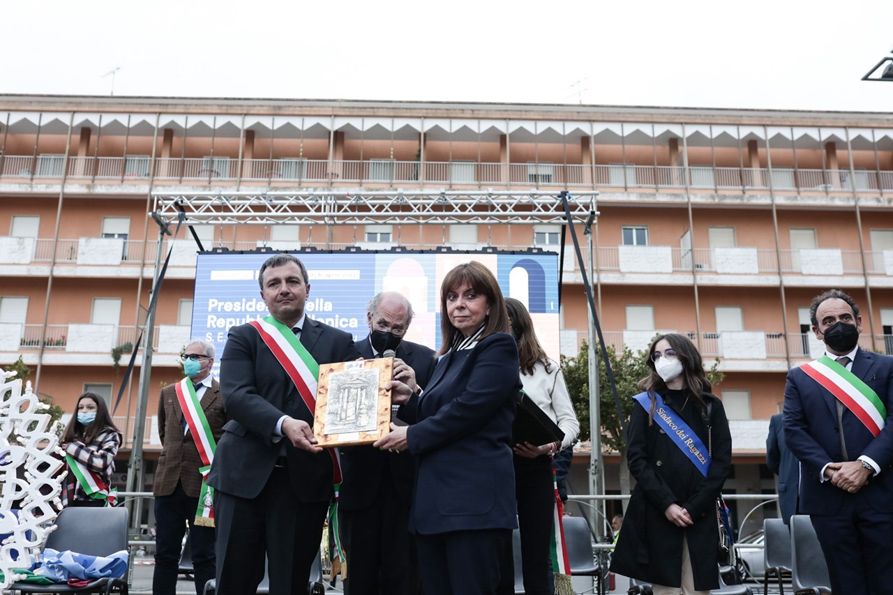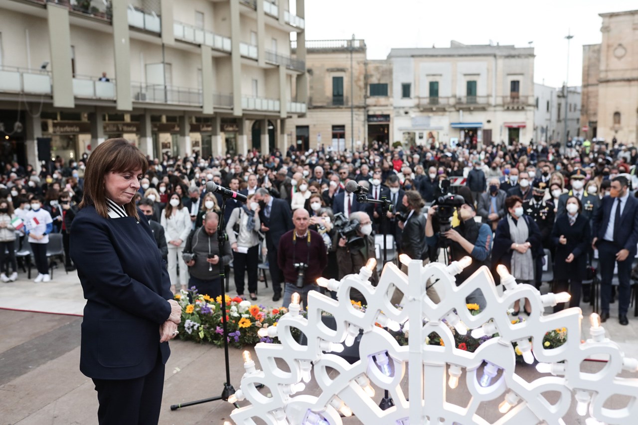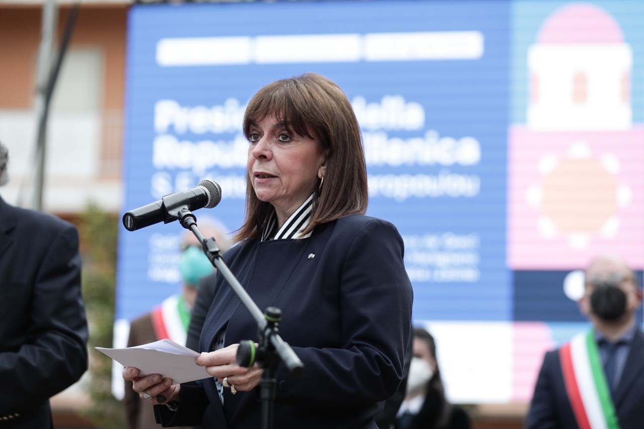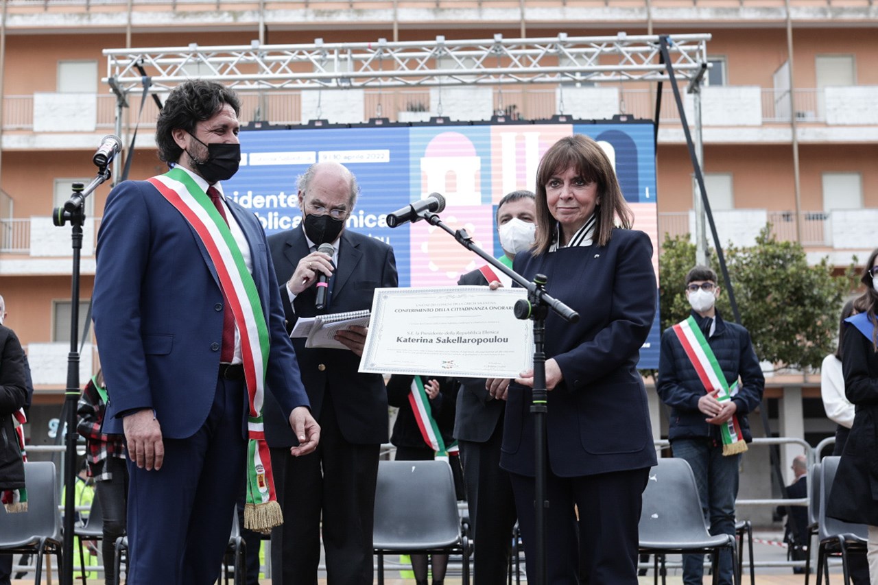 Ολοκληρώνοντας την επίσκεψή της στα ελληνόφωνα χωριά της Απουλίας, στην περιοχή Σαλέντο της Κάτω Ιταλίας, η Πρόεδρος της Δημοκρατίας Κατερίνα Σακελλαροπούλου μετέβη την Κυριακή στους Δήμους Cutrofiano, Sogliano Cavour και Martano και συναντήθηκε με τους δημάρχους της Grecia Salentina, καθώς και με εκπροσώπους τοπικών αρχών, στο Castello de Monti, στον Δήμο Corigliano d’ Otranto.
