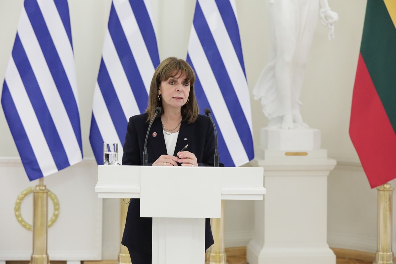 Η κυρία Σακελλαροπούλου, αφού ευχαρίστησε τον Λιθουανό ομόλογό της για την πρόσκληση να επισκεφθεί τη χώρα του, καθώς και για τη θερμή υποδοχή που επεφύλαξαν σε εκείνη και την ελληνική αντιπροσωπεία, τόνισε ότι οι μακροχρόνιες φιλικές σχέσεις των χωρών μας διατηρούνται σε πολύ καλό επίπεδο, τόσο διμερώς, όσο και στο πλαίσιο της Ευρωπαϊκής Ένωσης και των διεθνών οργανισμών, στους οποίους μετέχουμε.