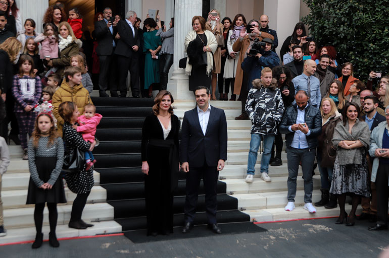 Θερμό ήταν το καλωσόρισμα στην είσοδο του Μεγάρου Μαξίμου και από την σύζυγο του πρωθυπουργού Μπέτυ Μπαζίανα η οποία υποδέχτηκε δια χειραψίας τον κάθε ένα ξεχωριστά δίνοντας τις δικές της ζεστές ευχές για καλή χρονιά.