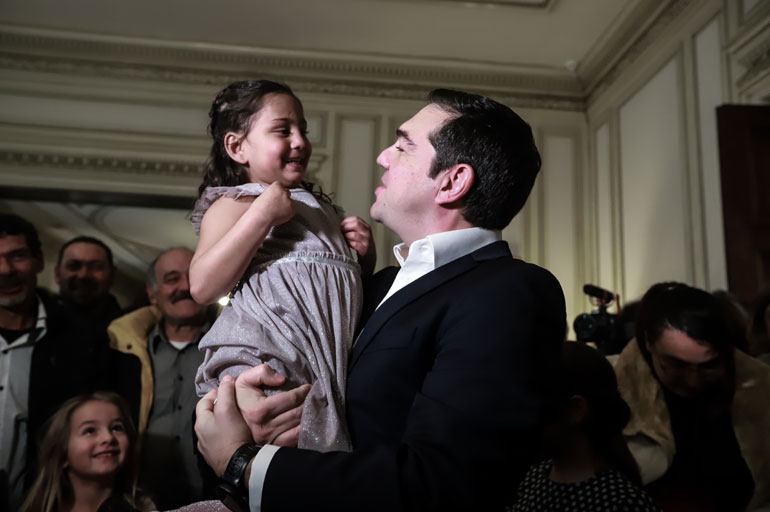 Μουσικές μελωδίες και ευχές για μια ακόμα καλύτερη χρόνια πλημμύρισαν σήμερα το Μέγαρο Μαξίμου. Η Κρατική Ορχήστρα Αθηνών «Metallo» άνοιξε το δρόμο ψάλλοντας τα πρωτοχρονιάτικα κάλαντα προς τιμή του πρωθυπουργού Αλέξη Τσίπρα ο οποίος υποδέχτηκε τους προσκεκλημένους του στον κήπο του Μεγάρου Μαξίμου.