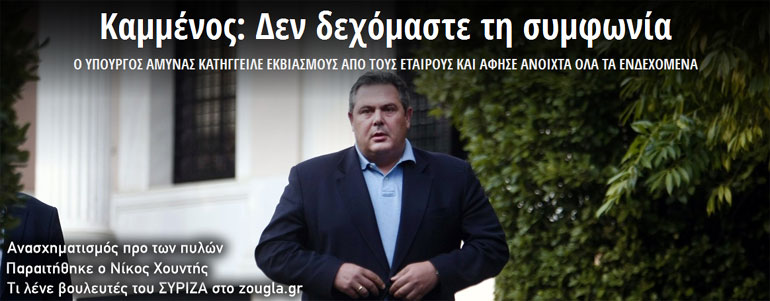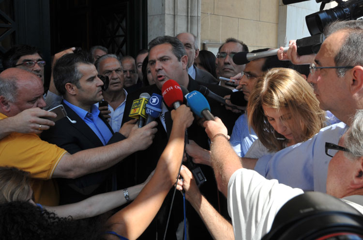 «Θα ψηφίσουμε αυτά που αποφασίσαμε στο συμβούλιο των πολιτικών αρχηγών και μόνο» ανέφερε σε δηλώσεις του ο Πάνος ΚαμμένοςΣχετικά με τις διαπραγματεύσεις ανάμεσα στον Έλληνα πρωθυπουργό και τους εταίρους έκανε λόγο για ένα πραξικόπημα που έγινε στην καρδιά της Ευρώπης: «Πήραμε ομόφωνες αποφάσεις. Είναι χωρίς αμφιβολία πλέον γνωστό ότι έγινε ένα πραξικόπημα στην καρδιά της Ευρώπης. Ο Έλληνας πρωθυπουργός εκβιάστηκε να υπογράψει ένα κείμενο που ήταν εντελώς διαφορετικό από αυτό που αποφασίστηκε στο συμβούλιο πολιτικών αρχηγών. Το πραξικόπημα συνεχίζεται και στην Ελλάδα. Επιθυμούν να ανατρέψουν την κυβέρνηση. Δεν θα επιτρέψουμε να γίνει πραξικόπημα. Δεν θα επιτρέψουμε να συνεχιστεί αυτό το παιχνίδι που δεν αποφασίζουν οι λαοί αλλά κάποιοι μη εκλεγμένοι από το Βερολίνο».