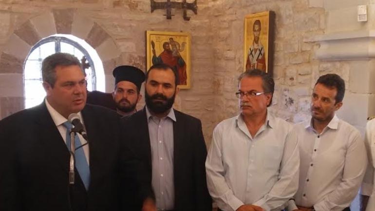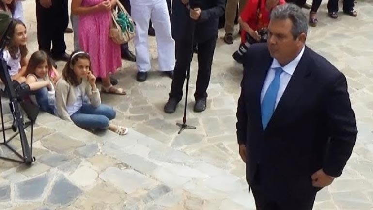 Ο Υπουργός Εθνικής Άμυνας Πάνος Καμμένος συνοδευόμενος από τον Αρχηγό ΓΕΝ Αντιναύαρχο Ευάγγελο Αποστολάκη ΠΝ και τον Βουλευτή Ηρακλείου των Ανεξάρτητων Ελλήνων Κώστα Δαμαβολίτη, παρέστη στις εκδηλώσεις μνήμης για την 74η Επέτειο του Ολοκαυτώματος της Καντάνου.