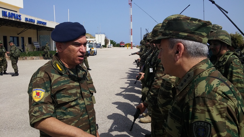 Θέλω να συγχαρώ όσους συμμετείχαν σε αυτή την Άσκηση. Είχα τη χαρά σήμερα τα ξημερώματα να βρεθώ μαζί με τον κ. Αρχηγό στη Λήμνο, τη Χίο και τη Σκύρο, όπου έγιναν οι ρίψεις των αλεξιπτωτιστών των ΕΤΑ και εν συνεχεία προχωρήσαμε στο δεύτερο μέρος της επιχείρησης, μαζί με την Ζ’ ΜΑΚ των Ειδικών Δυνάμεων, στην ανακατάληψη του αεροδρομίου της Ικαρίας.