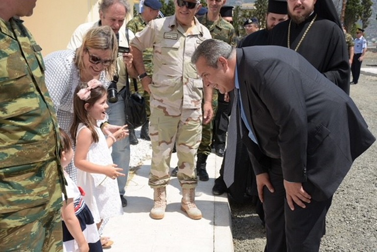 Τον υπουργό Εθνικής Άμυνας συνόδευαν ο αρχηγός ΓΕΕΘΑ ναύαρχος Ευάγγελος Αποστολάκης και ο αρχηγός ΓΕΣ αντιστράτηγος Αλκιβιάδης Στεφανής.