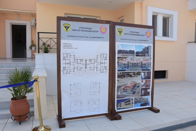 Ο κ. Καμμένος ευχαρίστησε την 731η Διεύθυνση Στρατιωτικών Έργων για την κατασκευή των 12 στρατιωτικών οικημάτων για τους αξιωματικούς και τα στελέχη του 747ου Ειδικού Τάγματος Μηχανικού για την ανακατασκευή των 2 στρατιωτικών οικημάτων για τους επαγγελματίες οπλίτες στη σχολή Μηχανικού.