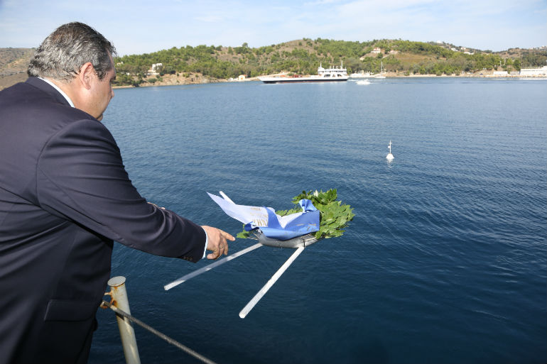 «Εμείς δεν θα υποστείλουμε ποτέ τις σημαίες ούτε τα λάβαρα τα δοξασμένα με αίμα. Εμείς δεν θα ξεχάσουμε ποτέ τους ήρωες μας και τις θυσίες τους» είπε ο υπουργός από το νησί, όπου παρέστη στις εκδηλώσεις για τα 72 χρόνια από τη βύθιση του αντιτορπιλικού Βασίλισσα Όλγα και στα αποκαλυπτήρια της προτομής του ήρωα Αντιναυάρχου Χριστόδουλου Καραθανάση.