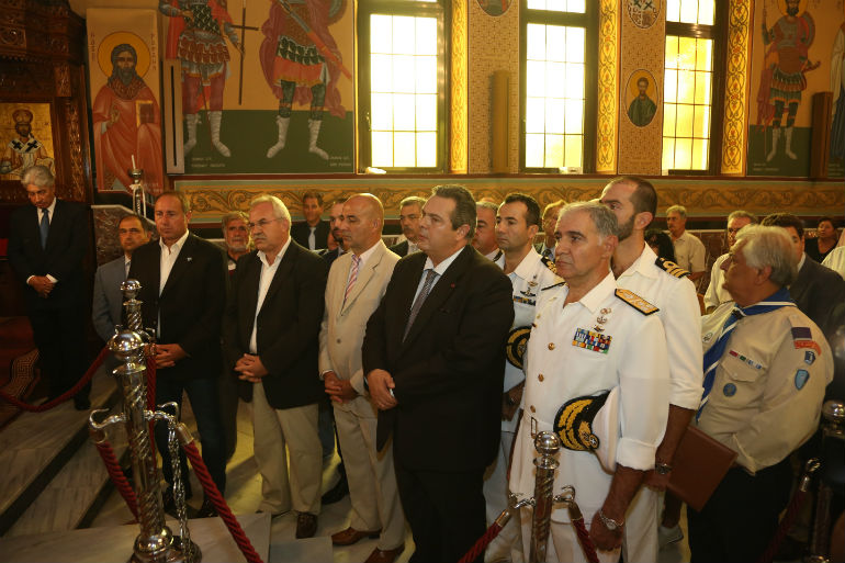 «Ο αντιναύαρχος Χριστόδουλος Καραθανάσης, που μαζί με τους Παναγιώτη Βλαχάκο και Έκτορα Γιαλοψό έπεσαν στο βωμό της πατρίδας και έδωσαν το υψηλότερο τίμημα, την ίδια τους τη ζωή, εκείνη τη βραδιά της κρίσης του 1996, στις βραχονησίδες Ίμια», πρόσθεσε.