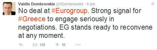«Δυστυχώς κατά τις σημερινές εργασίες διαπιστώσαμε ότι έχει γίνει πολύ μικρή πρόοδος στο ζήτημα της Ελλάδας. Δεν είναι δυνατόν να υπάρξει συμφωνία μέχρι στιγμής. Ωστόσο είναι ακόμη δυνατό να υπάρξει επιμήκυνση του προγράμματος», δήλωσε στη συνέντευξη Τύπου.
