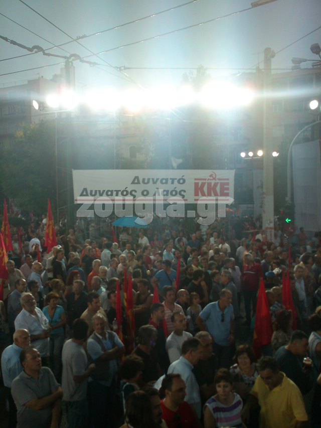 Το ΚΚΕ, πρόσθεσε, υποστηρίζει το ενιαίο και αδιαίρετο τρίπτυχο: αποδέσμευση της Ελλάδας από τη λυκοφωλιά της ΕΕ, μονομερή διαγραφή του κρατικού χρέους και λαϊκή εξουσία.