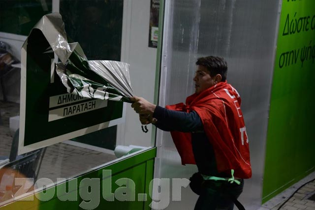 Μια μισοσκισμένη αφίσα είναι το μόνο που απέμεινε στο εκλογικό περίπτερο του ΠΑΣΟΚ στα Προπύλαια, αποτυπώνοντας συμβολικά την εικόνα που επικρατεί στο πάλαι ποτέ κραταιό κίνημα, έπειτα από τα αποτελέσματα της κάλπης.
