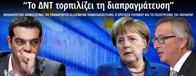 Στις χθεσινές διαπραγματεύσεις ελληνική αντιπροσωπεία και πιστωτές φαίνεται πως επέμειναν στις θέσεις τους, την ώρα που το ΔΝΤ εμφανίζεται «πρόθυμο» να τορπιλίζει την ομαλή εξέλιξη των συνομιλιών. Χαρακτηριστικό είναι το κυριακάτικο άρθρο της γερμανικής «Frankfurter Allgemeine Sonntagszeitung», το οποίο μεταξύ άλλων έκανε λόγο για πρόταση-πρωτοβουλία του κ. Γιούνκερ, η οποία ενώ αρχικά έγινε αποδεκτή από το ΔΝΤ, εν συνεχεία απερρίφθη από την επικεφαλής του Ταμείου Κριστίν Λαγκάρντ.