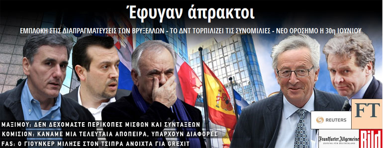 Υπενθυμίζεται ότι στις χθεσινές διαπραγματεύσεις το κλίμα ήταν έντονο εξαρχής και έπειτα από μόλις 45 λεπτά η ελληνική αποστολή αποχώρησε.
