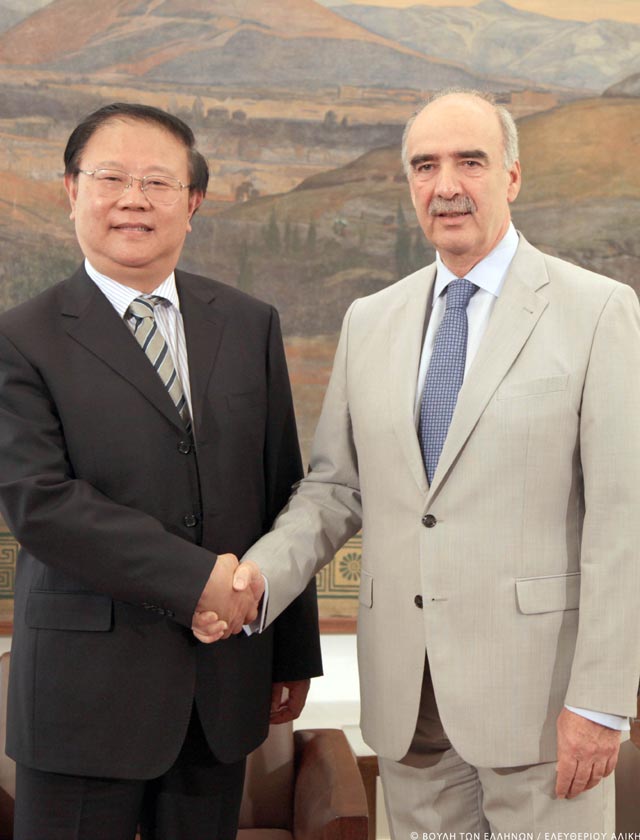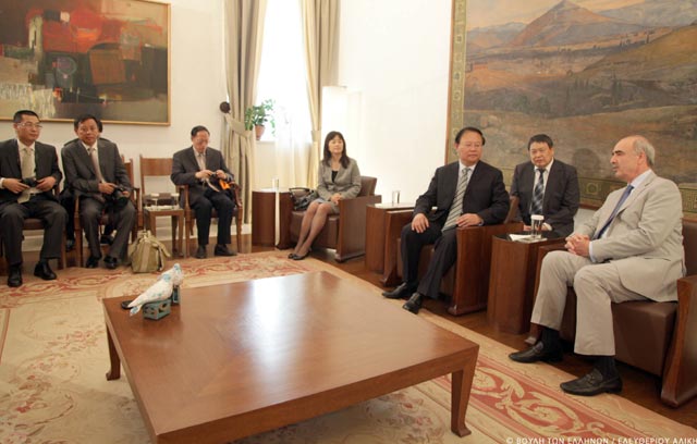 Ο πρόεδρος της Βουλής χαρακτήρισε την Κίνα «μεγάλη, φίλη χώρα» και τις ελληνοκινεζικές οικονομικές και αναπτυξιακές σχέσεις «στρατηγικής σημασίας». «Η Ελλάδα συνεχίζει τη μεγάλη προσπάθεια του λαού και της ηγεσίας της για τη δημοσιονομική εξυγίανση, έχει όμως, ήδη, ξεπεράσει τα πολύ δύσκολα προβλήματα και βρίσκεται, πλέον, σε περίοδο σταθεροποίησης των οικονομικών μεγεθών της, και της θέσης της στην ευρωζώνη και το κοινό ευρωπαϊκό νόμισμα» δήλωσε ο κ. Μεϊμαράκης στους επισκέπτες του.
