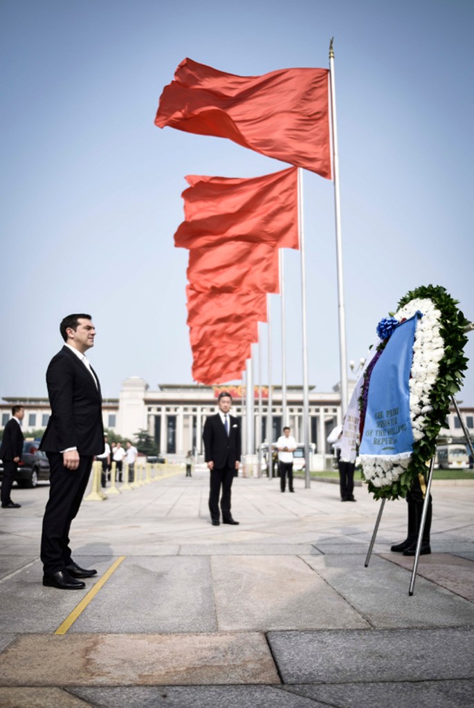 Ο Έλληνας πρωθυπουργός, Αλέξης Τσίπρας, δήλωσε από την πλευρά του ότι «στις ελληνο-κινεζικές σχέσεις κλείνει ένας κύκλος και ανοίγει ένας καινούριος» και ευχαρίστησε την Κίνα για την συμπαράστασή της στην Ελλάδα, χρησιμοποιώντας μάλιστα την ελληνική έκφραση «οι φιλίες φαίνονται στα δύσκολα».