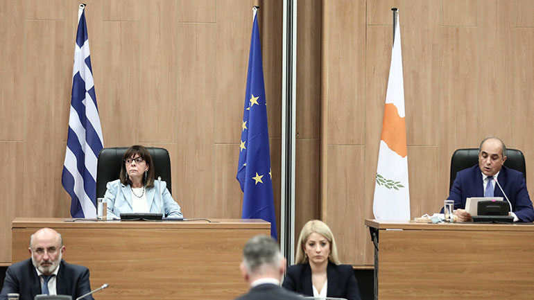 Συναντήσεις με την πολιτική και στρατιωτική ηγεσία της Κύπρου καθώς και επίσκεψη σε χωριά του νησιού περιλαμβάνει η δεύτερη μέρα της επίσημης επίσκεψης που πραγματοποιεί η Πρόεδρος της Ελληνικής Δημοκρατίας Κατερίνα Σακελλαροπούλου στην Κύπρο.