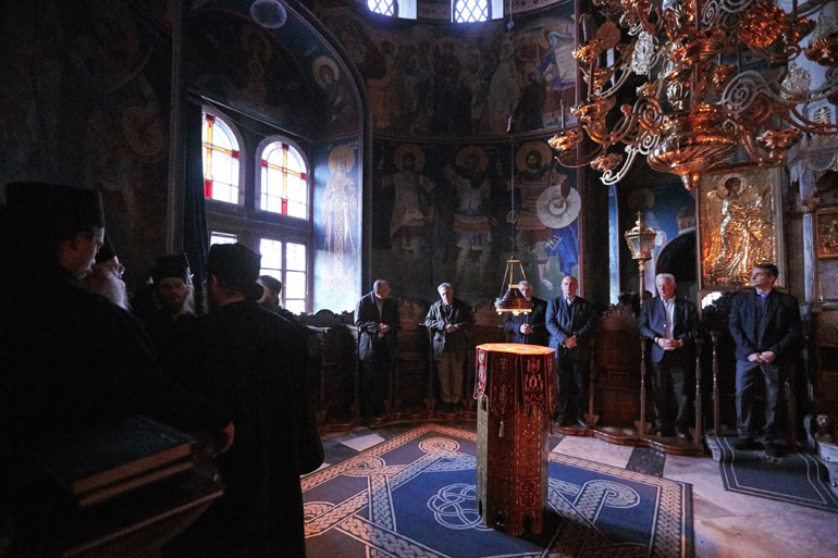 Ο πρόεδρος της ΝΔ διανυκτέρευσε το βράδυ στη Μονή και το πρωί παρακολούθησε υπό το φως των κεριών τη θεία λειτουργία.