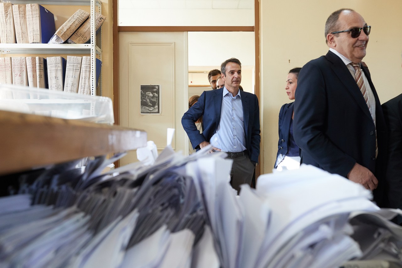 Ο κ. Μητσοτάκης επισκέφθηκε αρχικά το γραφείο πολιτικών ένδικων μέσων, εκεί όπου πραγματοποιούνται οι καταθέσεις εφέσεων. Ενημερώθηκε από τον προϊστάμενο για τις γραφειοκρατικές διαδικασίες και τον τρόπο που εξυπηρετείται σε καθημερινή βάση το κοινό.