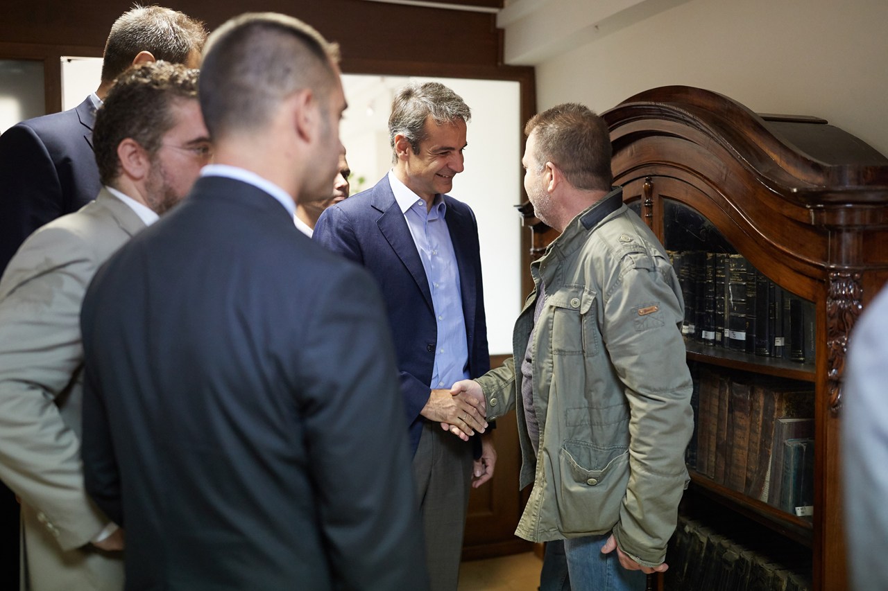 Στο κτίριο όπου λειτουργεί η διοίκηση του Πρωτοδικείου, ο κ. Μητσοτάκης συναντήθηκε με τον Πρόεδρο του Τριμελούς Συμβουλίου Διοίκησης κ. Ελευθέριο Γεωργίλη, καθώς και με εκπροσώπους των επιμελητών στην Εισαγγελία.