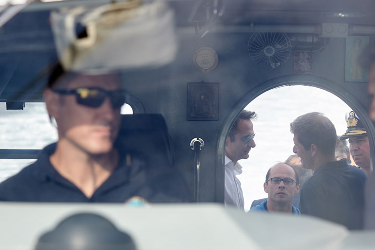 Στη συνέχεια, ο Αρχηγός της Αξιωματικής Αντιπολίτευσης επιβιβάστηκε σε σκάφος του Λιμενικού Σώματος και κατευθύνθηκε προς το σημείο του ναυαγίου του «Αγία Ζώνη ΙΙ», όπου παρακολούθησε από κοντά τις εργασίες ανέλκυσης.
