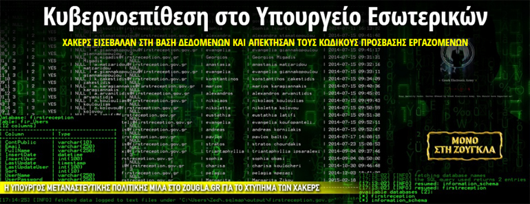 Συναγερμός σήμανε το μεσημέρι της Πέμπτης στην Υπηρεσία Πρώτης Υποδοχής του Υπουργείου Εσωτερικών, αφού διαπιστώθηκε πως χάκερς τρύπωσαν στα πληροφοριακά συστήματα. Όπως αποκάλυψε το zougla.gr, οι χάκερ υπέκλεψαν και δημοσίευσαν τους κωδικούς εισαγωγής στο σύστημα, υπαλλήλων του Υπουργείου.
